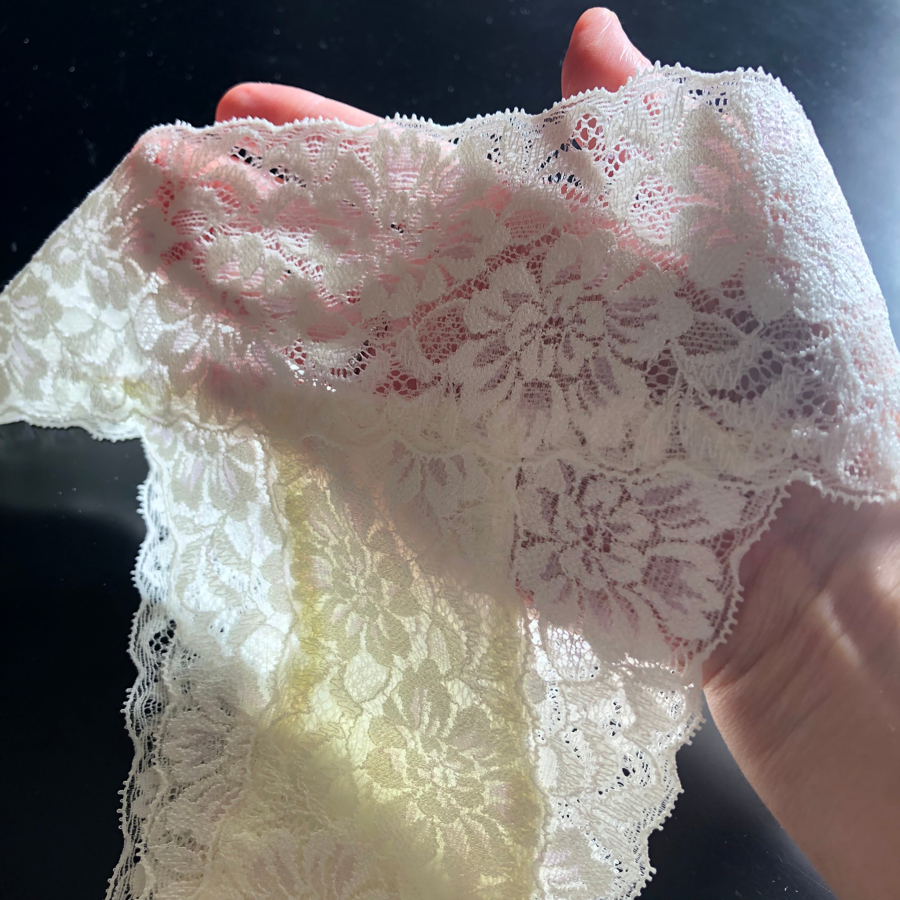 レースを使用しているため、繊細なつくりになってます。丁寧に扱っていただきますようお願いいたします。(手洗い・ネットに入れての洗濯をおすすめしています)