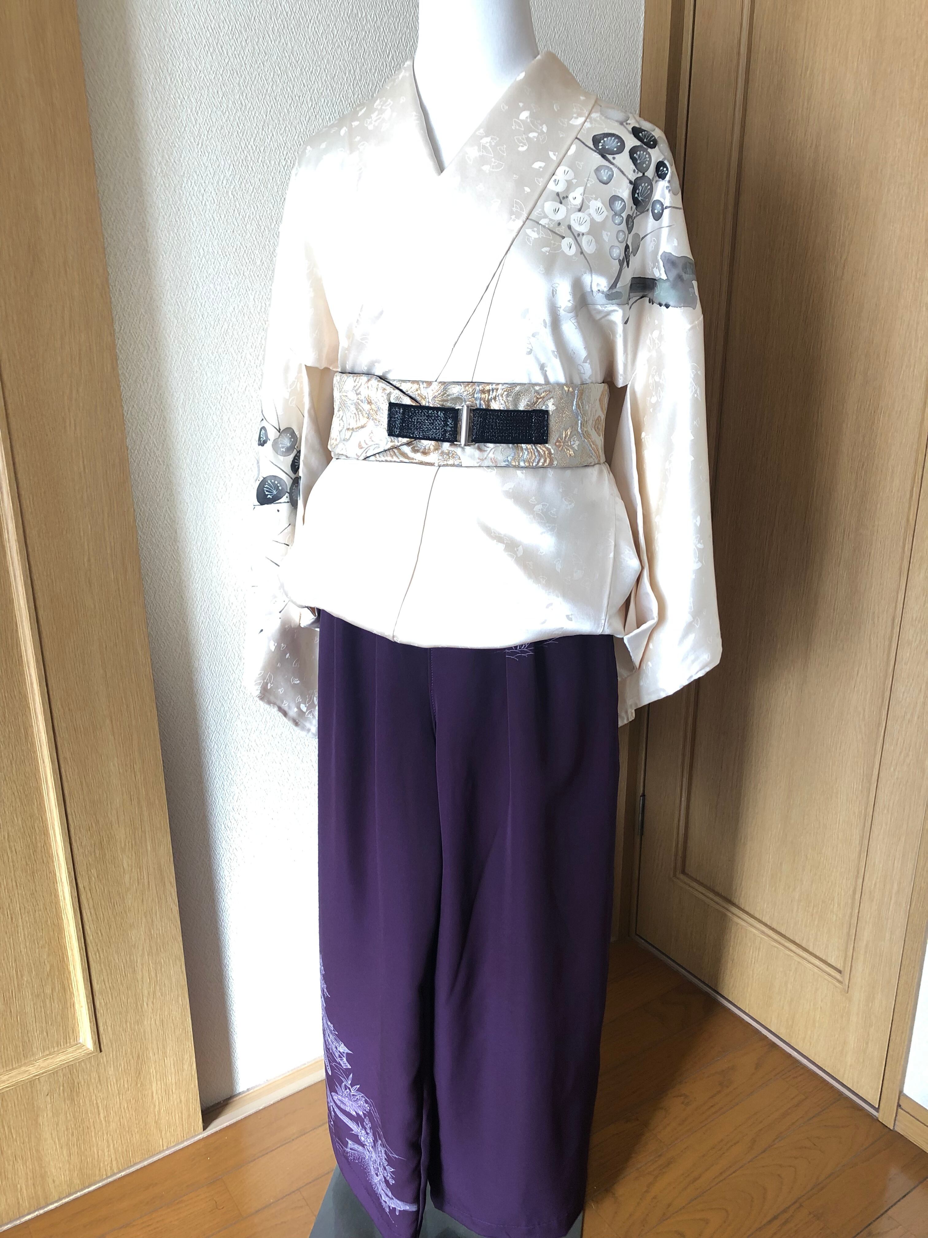 下衣は紫正絹ワイドパンツ、帯地ベルト帯を合わせてもステキです。