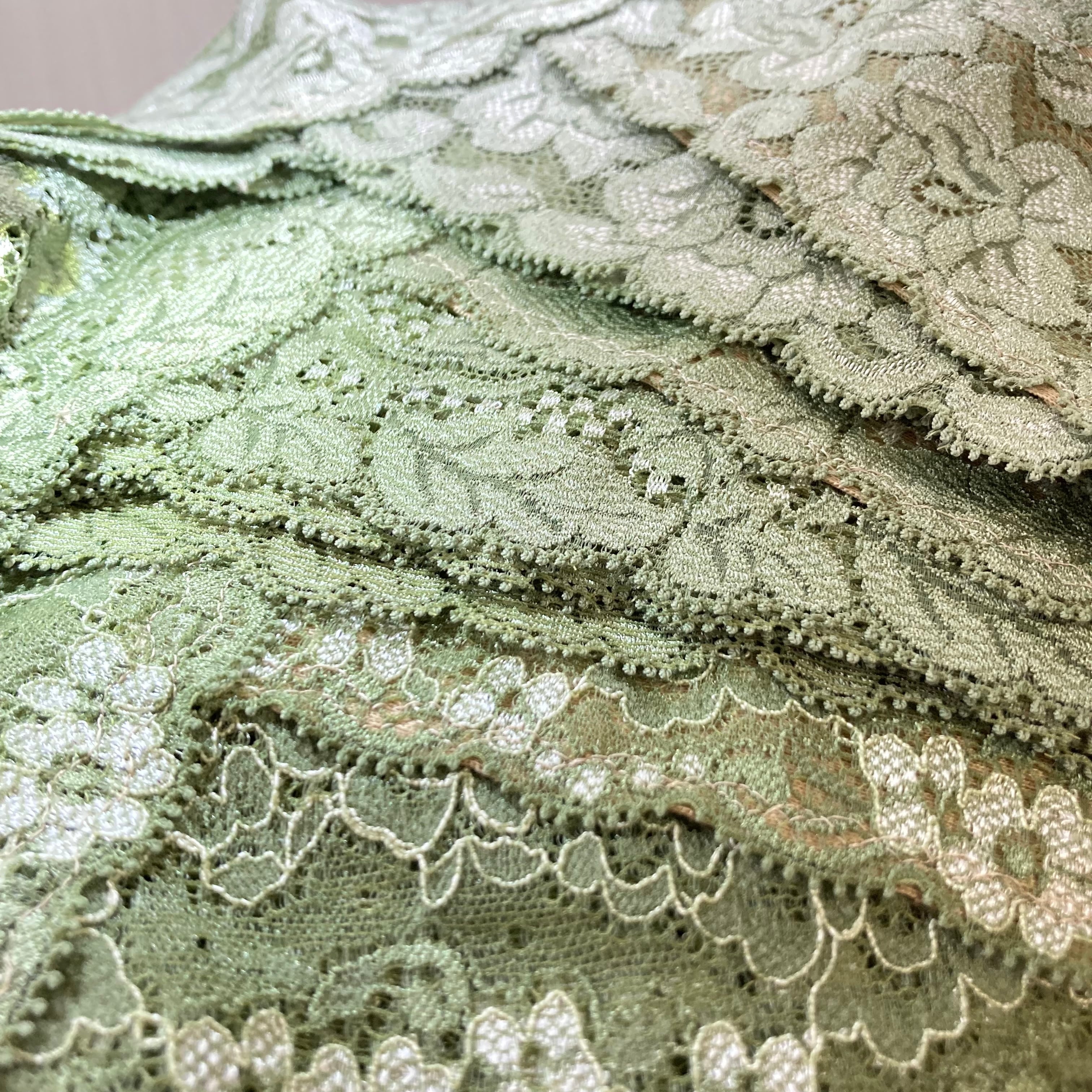 今回はオリーブ色のレースを採用しました。